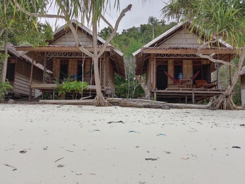 Face aux eaux cristallines de Raja Ampat, cet hébergement à l’esprit local séduit par sa simplicité et son atmosphère chaleureuse. Les bungalows en bois avec salle de bains privative, posés entre plage et cocotiers, invitent à la détente après une journée de plongée ou d’exploration des îles voisines.
